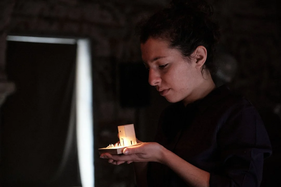 Directed by: Marta Hermannová. Scenography by: Iva Ščerbáková. Scenographic collaboration: Dominik Migač. Music by: Vojtěch Cibulka. Cast: Anna Datiashvili, David Bolech. Dramaturgy: collective. Voiceover: Marek Bečka. Production: Adam Bureš
